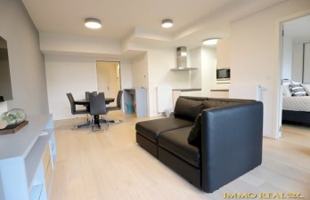 Excellent appartement de charme d'environ 70m², meublé avec beaucoup de goût, composé d'un hall d'entrée avec vestiaire et wc séparé, un agréable et lumineux living de 29m² donnant sur la cuisine hyper équipée et la belle terrasse de 8m² (orientée ouest), une chambre tout confort de 15m² organisée en suite avec la salle de bain et le local de buanderie équipé de machine à laver et sèche-linge. L'appartement dispose d'une cave avec meubles de rangement faits sur mesure. Emplacement de parking inclus.